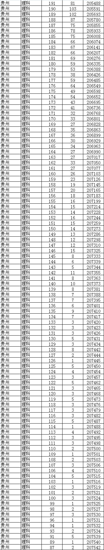 2017年贵州高考成绩一分一段表